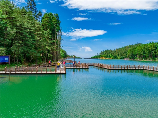 登高首选青云栈道,3100 米的栈道沿绝壁蜿蜒,脚下是万丈深渊,身旁是层林尽染的山岳,登顶后极目远眺,可见峰峦如黛、云海翻腾,将 “苍松斗妍、山花织锦” 的四绝景观尽收眼底。待到夜幕降临,明月升空,景区 “以月亮情吸引人” 的理念在此刻具象化 —— 山月相融的意境愈发浓郁,坐在山间石阶上,听松涛阵阵,看月色洒在竹海与飞瀑上,偶有流泉潺潺入耳,构成秋日最惬意的 “人月共欢” 图景。