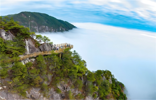 核心景点青云栈道全长约 3100 米,盘旋于悬崖峭壁之上,忽高忽低,行走其间脚下便是万丈深渊,既是观云海、看日出的绝佳位置,也能将 “绝壁惊人、怪石争奇” 的四绝景观尽收眼底;壮观的五叠瀑布云谷飞瀑落差119.57米,被誉为江南第一高瀑也是宜春古八景之一;海拔1530米的月亮湖似一弯明月悬挂在山顶笔直的云杉矗立在湖水之中梦幻迷离,空灵唯美......
